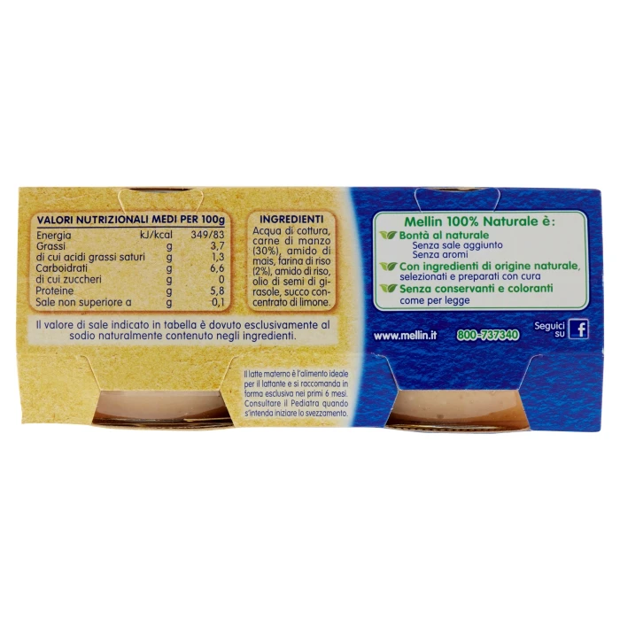 Mellin Manzo 100% Naturale Omogeneizzato 2 x 80 g